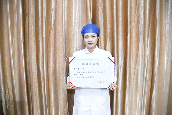 介入科护士长黄秋香获得2021年上海市社会医疗机构“优秀护理工作者”称号及证书,郭院长表示:荣誉的背后离不开辛勤的努力,这不仅仅是个人荣誉,也是医院的荣誉。