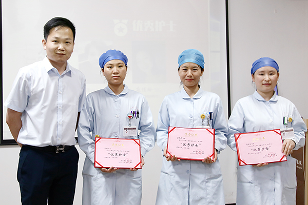 接下来,开始表彰活动,郭院长宣读关于表彰优秀护理人员、服务明星及操作比赛获奖人员的名单。